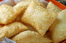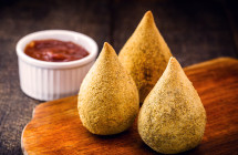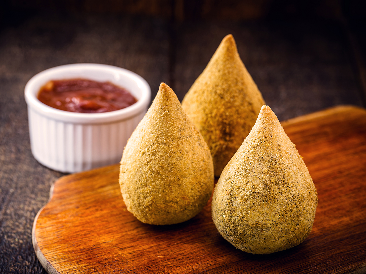 Coxinha (crocante por fora, suculenta por dentro), Esfira (massa macia e recheio de dar água na boca) e Croissant (leve, amanteigado e delicioso).